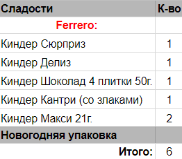 Кол-во сладостей: 6 шт.