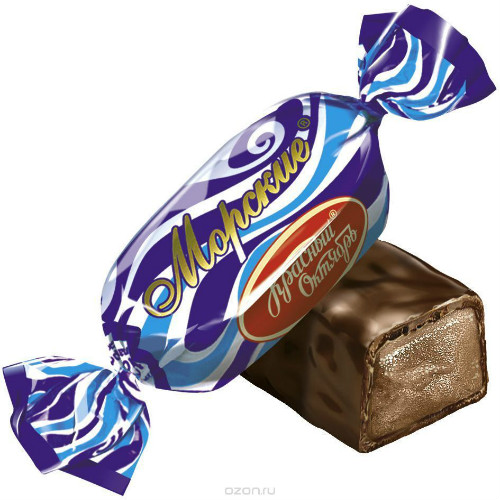 Конфеты Морские производства Красный Октябрь можно купить оптом с доставкой по Москве, Подмосковью и ЦФО. Низкая цена обусловлена отсутствием посредников при наличии прямого договора с производителем.  Все актуальные сертификаты в наличии. Минимальный заказ: 1 коробка