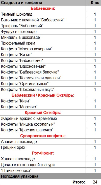 Кол-во сладостей: 24 шт.