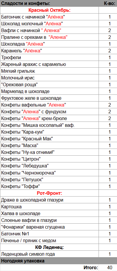 Интернет-магазин сладких новогодних подарков работает от производителя напрямую, за счет чего мы убираем посредников и снижаем цены на детские новогодние подарки. Кроме того, наша логистика позволяет доставить заказ практически в любой город за наш счет. Все цены на сладкие подарки актуальны