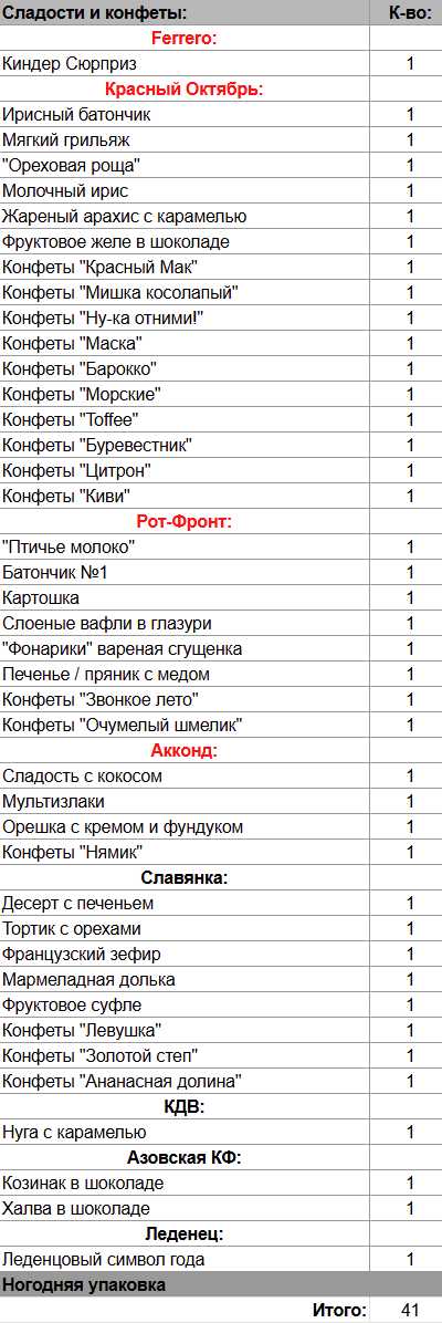 Кол-во сладостей: 41 шт.