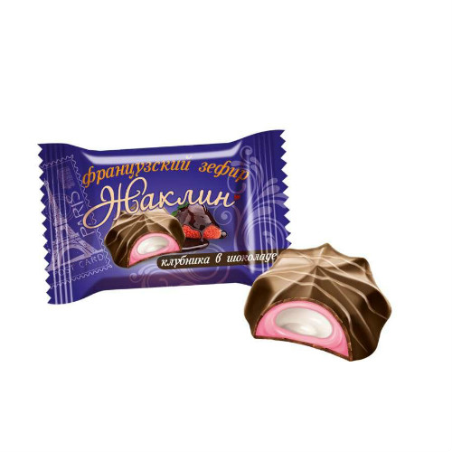 Жаклин французский зефир Клубника в шоколаде производства фабрики Славянка можно купить оптом с доставкой по Москве, Подмосковью и ЦФО. Низкая цена обусловлена отсутствием посредников при наличии прямого договора с производителем.  Все актуальные сертификаты в наличии. Минимальный заказ: 1 коробка